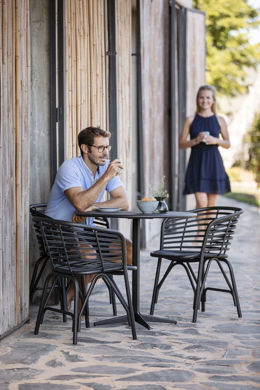 Cane-linen Blend-ulkotuoli tuo hienostuneen lisän kesämökin, terassin tai puutarhan kalustukseen. Foersom & Hiort-Lorenzenin suunnittelema tuoli muistuttaa muotoilultaan rottinkikalusteita tai muita perinteisiä puutarhatuoleja – tosiasiassa se on kuitenkin valmistettu kestävästä ja helppohoitoisesta alumiinista. Terassituolin olemus on moderni ja erottuva, mutta siinä on silti samaan aikaan jotain etäisesti tuttua. Ulkotilojen ohella Blend-tuoli sopii mainiosti käytettäväksi myös sisätiloissa, ja halutessaan siihen saa lisämukavuutta erikseen myytävällä istuintyynyllä.