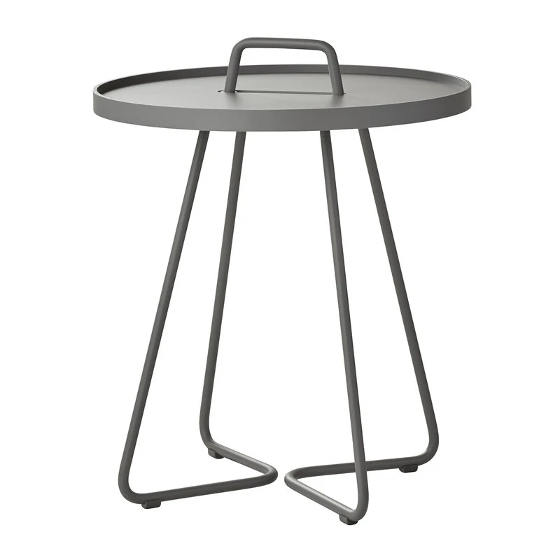 Cane-linen On-the-move on veikeä ja monikäyttöinen pikkupöytä niin sisä- kuin ulkokäyttöönkin. Kevyestä ja kestävästä alumiinista valmistettua pöytää on helppo siirrellä kantokahvasta, ja irrotettavaa pöytätasoa voi käyttää myös erillisenä tarjottimena. On-the-move on ketterä ja tyylikäs ulkopöytä terassilla, parvekkeella tai puutarhassa, ja sen iloinen ilme sopii hyvin myös sohvapöydäksi sisätiloihin. Pöydän on suunnitellut tanskalainen muotoilutoimisto Strand+Hvass.