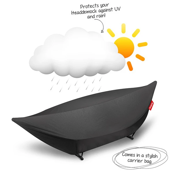 Fatboyn Headdemock-suoja on kätevä lisävaruste, joka pitää Headdemock-riippukeinun kuivana sateella ja suojaa sen roskilta, linnuilta, siitepölyltä ja värejä haalistavilta auringon UV-säteiltä. Suoja liukuu helposti riippukeinun ylle ja pysyy tukevasti paikoillaan keinun jalkojen alle asetettavien kuminauhojen ansiosta. Headdemock-suoja on valmistettu kevyestä mutta kestävästä nailonkankaasta, jossa on vedenkestävä hopeapinnoite.