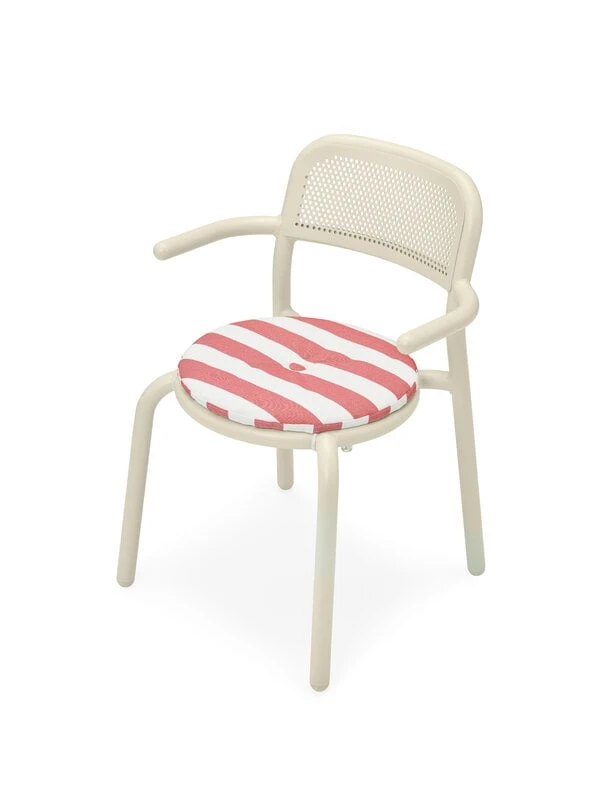 Fatboyn Toní-tuoleille suunniteltu istuintyyny täydentää leikkisää Toní-ulkokalustekokoelmaa. Vettä ja likaa hylkivällä, UV-suojatulla Olefin-verhoilulla päällystetyn istuinpehmusteen saa nerokkaiden kiinnitysnauhojen avulla helposti ja tukevasti kiinni Toní-tuolin istuimeen. Pyöreän tyynyn keskellä on koristenappi.
