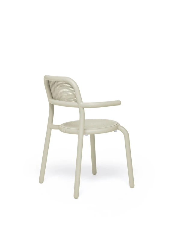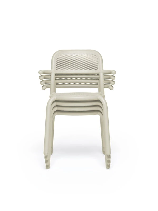 Fatboyn Toní-tuolin muotoilussa on viittauksia sekä rakennusteollisuuteen että klassisiin kahvilakalusteisiin: tuolin putkimainen runko muistuttaa suojakaaria, kun taas rei’itetty selkänoja ja istuin tuovat mieleen perinteiset wieniläistuolit. Käsinojallisia Toní-terassituoleja on mahdollista pinota jopa neljä päällekkäin.