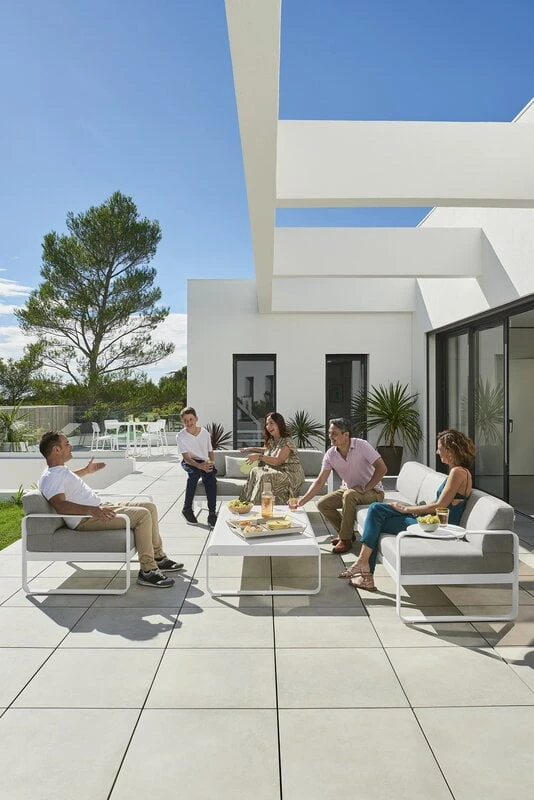 Fermobin Bellevie-sohvapöytä kutsuu kokoamaan läheiset terassille tai puutarhaan, jotta voit nauttia kesän parhaista hetkistä yhdessä perheen tai ystävien kanssa. Sohvapöydän ilmettä hallitsee modernin geometrinen, mutta reunoistaan kauniisti pyöristetty muoto, jonka ansiosta pöytä on helppo yhdistää monenlaiseen sohvaryhmään. Matala puutarhapöytä on valmistettu kevyestä mutta kestävästä alumiinista, joten se kestää hyvin vaihteleviakin sääolosuhteita.