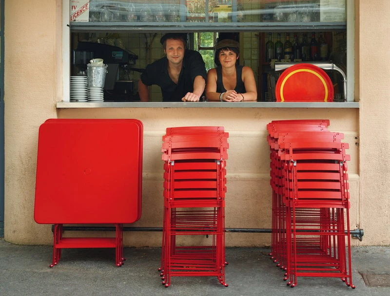 Kokoontaitettavat tuolit ja pöydät olivat 1800-luvun lopulla etenkin limonadimyyjien suosiossa, sillä nopeasti pakattavien kalusteiden ansiosta he välttyivät maksamasta pysyvän terassin pitoon vaadittuja lupamaksuja. Fermobin Bistro-kalusteet on kehitetty vuonna 1889 patentoidun mallin pohjalta – vaikka vastaavia kalusteita voi nähdä siellä täällä, ovat Fermobin tuotteet niitä alkuperäisiä.