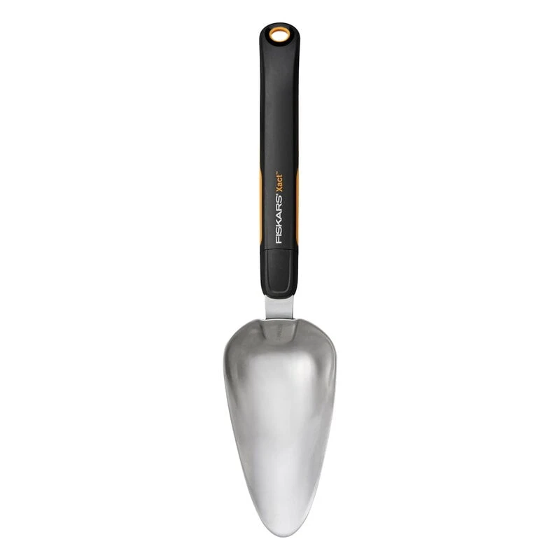 Fiskarsin Xact-istutuslapio soveltuu niin istuttamiseen kuin maanmuokkaustöihin. Pikkulapio on varustettu leveällä, teroitetulla lapio-osalla, joka pureutuu tehokkaasti maaperään, sekä miellyttävällä SoftGrip-kahvalla, josta voi tarttua monella eri tavalla – aina yhtä mukavasti. Kahva on muotoiltu tavallista pidemmäksi niin, että se tarjoaa vipuvoimaa kaivuuhommiin. Xact-istutuslapiolle on myönnetty vuoden 2019 Red Dot -muotoilupalkinto.