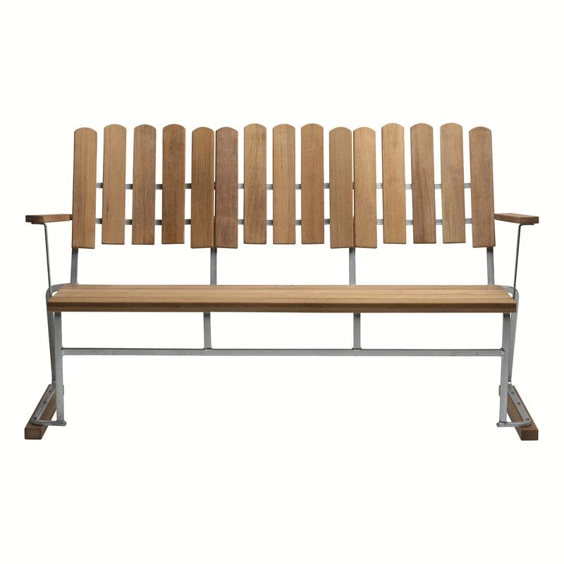 Grythyttan Stålmöblerin sohva 6 on viehättävä ja lujatekoinen ulkosohva, jossa kohtaavat teräksinen runko ja tiikkipuiset istuinosat. Örjan Lindqvistin suunnittelema kolmen istuttava sohva toimii yhtä hyvin ruokapöydän ääressä terassilla kuin puiden varjostamassa oleskelukeitaassa puutarhassa. Ajan myötä galvanoidut teräsosat saavat ylleen himmeän mattapinnan, ja käsittelemätön tiikkipuu patinoituu puolestaan kauniin hopeanharmaaksi.