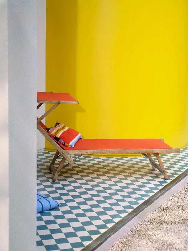Ulkokäyttöön suunniteltu Paraati-tyynynpäällinen tuo värikästä Marimekko-designia parvekkeelle tai terassille. Päällinen on valmistettu kierrätetystä polyesterista, ja siinä on vettähylkivä pinta yllättävien sadekuurojen varalta. Pinnassa on myös UV-säteiltä suojaava käsittely, jonka ansiosta värit eivät haalistu keskikesän auringossa.
