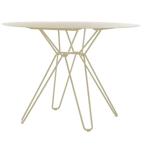Massproductionsin Tio on elegantti ruokapöytä, joka sopii mainiosti sekä sisä- että ulkokäyttöön. Pyöreän Tio-pöydän metallista pöytälevyä kannatteleva runko on kauttaaltaan valmistettu jauhemaalatusta, galvanoidusta teräslangasta, joka antaa pöydälle sen tunnusomaisen keveän ja ilmavan ilmeen. Chris Martinin suunnittelema hienostunut Tio-kokoelma on ajattoman kaunis valinta sekä ruokailutilaan että terassille, niin kotiin kuin kesämökillekin.