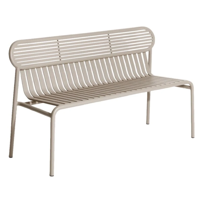 Week-end-penkki on osa ranskalaisen Petite Frituren alumiinisten ulkokalusteiden kokoelmaa. Week-end-penkin tunnistettavimpiin piirteisiin kuuluvat sen selkänojan ovaalinmuotoiset yksityiskohdat sekä vaaka- ja pystysuorien linjojen vuorottelu. Linjakkaasti muotoiltu, ulkokäyttöön suunniteltu penkki sopii sulavasti yhteen saman sarjan pöytien kanssa.