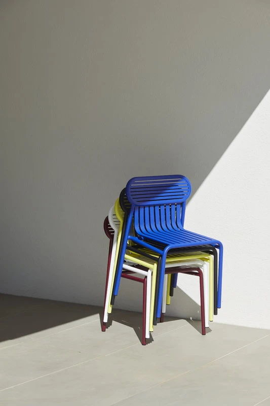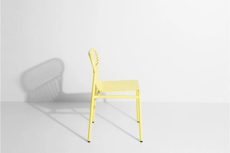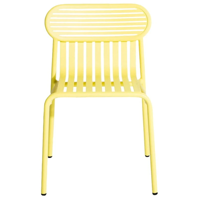 Week-end-tuoli on osa ranskalaisen Petite Frituren alumiinisten ulkokalusteiden kokoelmaa. Viehättävien Weekend-tuolien tunnistettavimpiin piirteisiin kuuluvat niiden selkänojien ovaalinmuotoiset yksityiskohdat sekä vaaka- ja pystysuorien linjojen vuorottelu. Kaikki kokoelman tuolit ovat pinottavia.