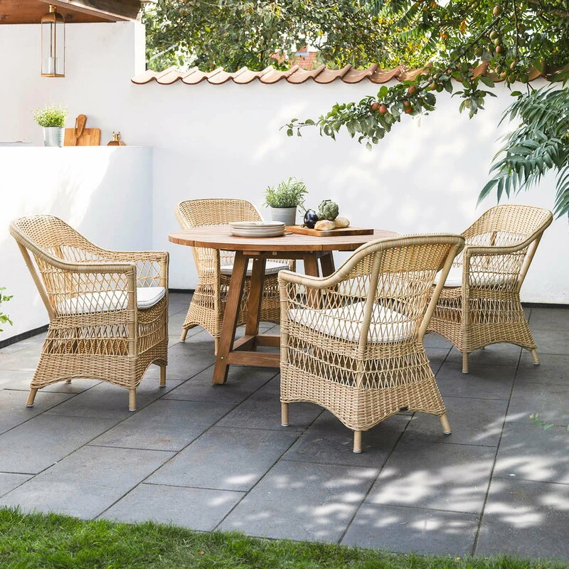 Sika-Designin Charlot-tuoli on erityisesti ulkokäyttöön suunniteltu ruokapöydän tuoli, jonka korkea selkänoja ja selkeälinjaiset punokset on punottu rottinkia jäljittelevästä synteettisestä kuidusta. Kokonaisuuden täydentävät ulkotiloihin soveltuvat istuintyynyt, joissa on konepestävät päälliset.