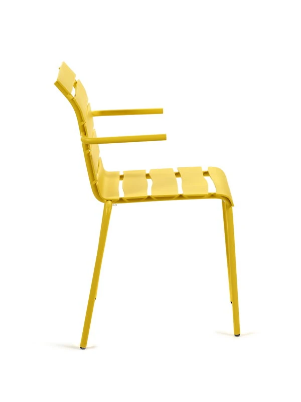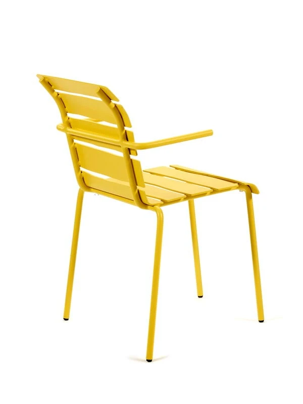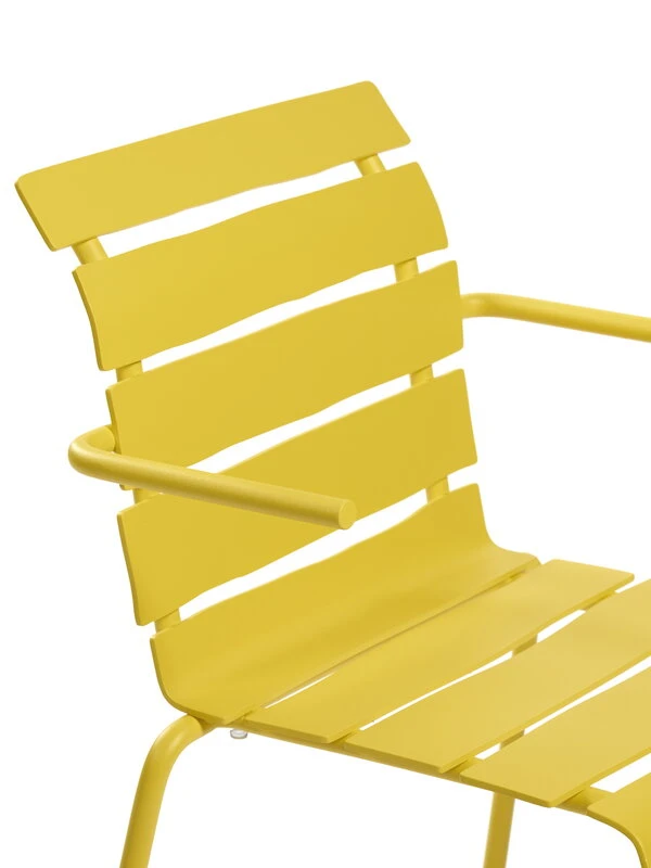 valerie objectsin käsinojallisen Aligned-tuolin näennäisen yksinkertainen ilme yllättää: epäsymmetriset, alumiinista valmistetut säleet antavat klassisen vähäeleiselle puutarhatuolille täysin uudenlaisen persoonan. Tunnetun hollantilaissuunnittelija Maarten Baasin kekseliäs ja leikkisä kädenjälki on vahvasti esillä jokaisessa yksityiskohdassa – Aligned-tuoli on luotu täsmällisesti Baasin lyijykynäpiirroksen pohjalta. Kaunis ja kestävä ulkokäyttöön soveltuva käsinojallinen tuoli sopii niin puutarhapöydän ääreen kuin kesämökin terassillekin ja sen hurmaavan persoonallinen ilme ihastuttaa vuodesta toiseen.